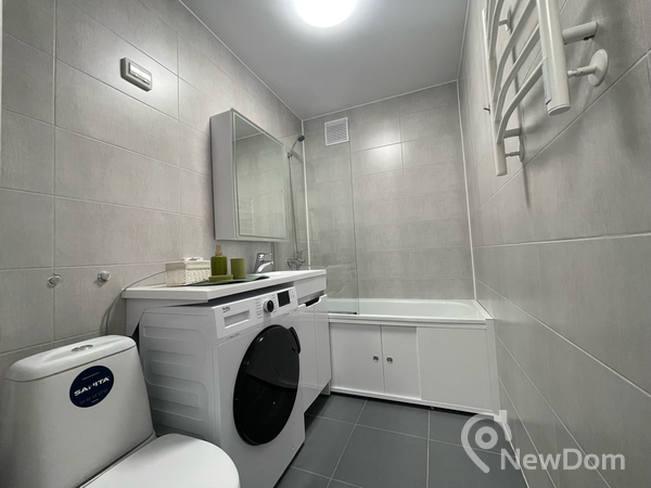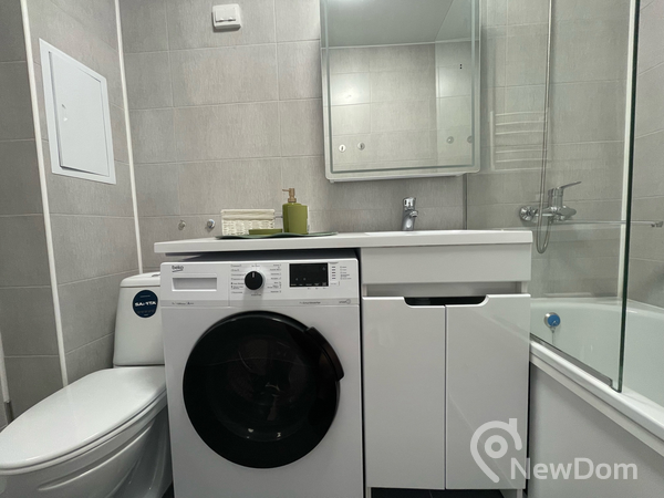 Санузел совмещен, оборудован электрическим полотенцесушителем с регулировкой тепла и таймером, стиральной машиной.